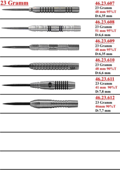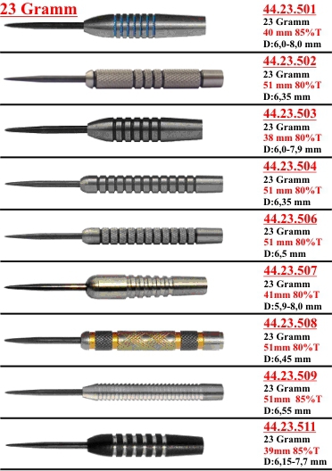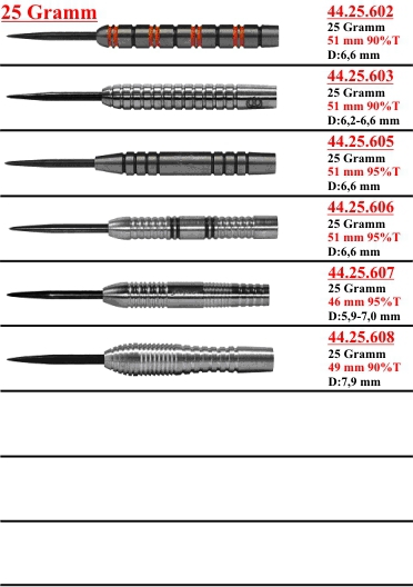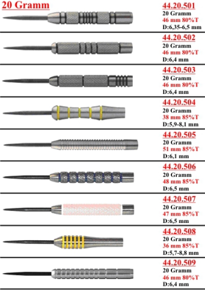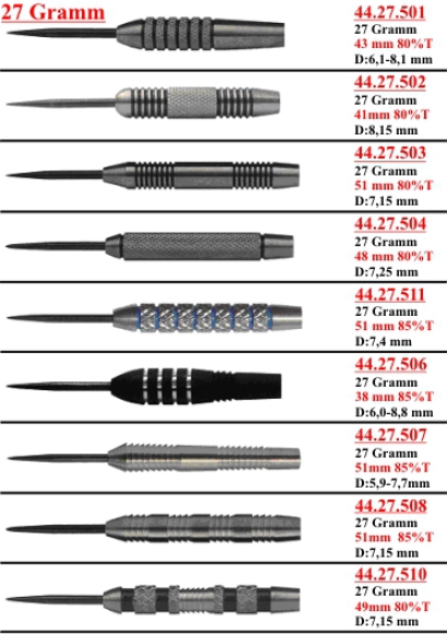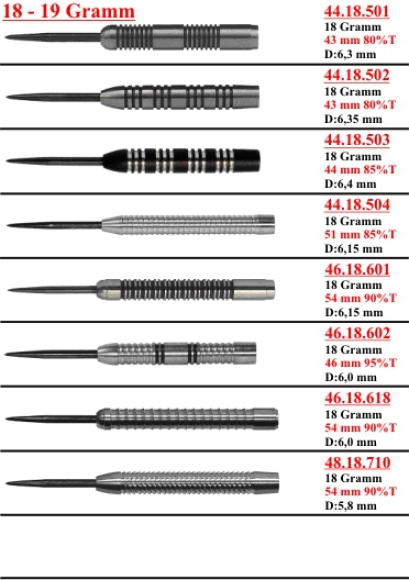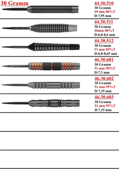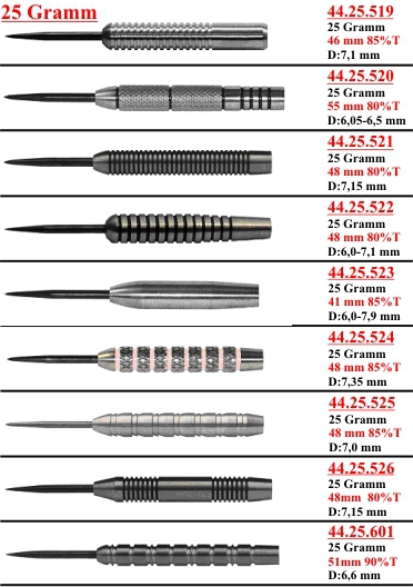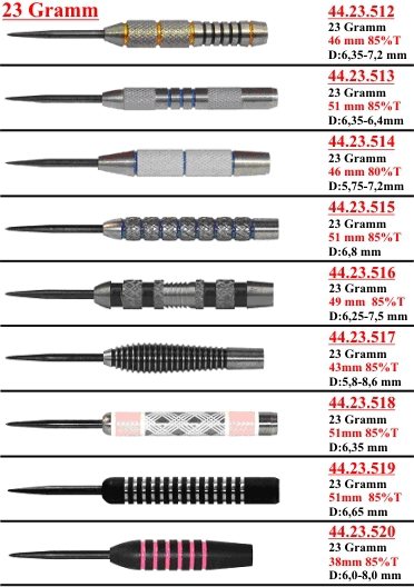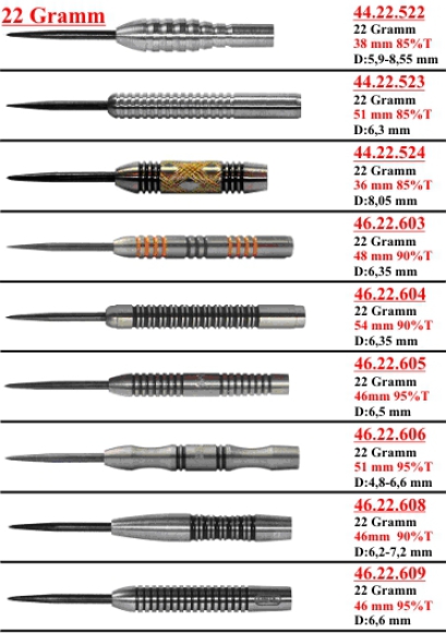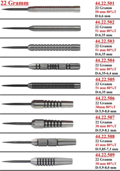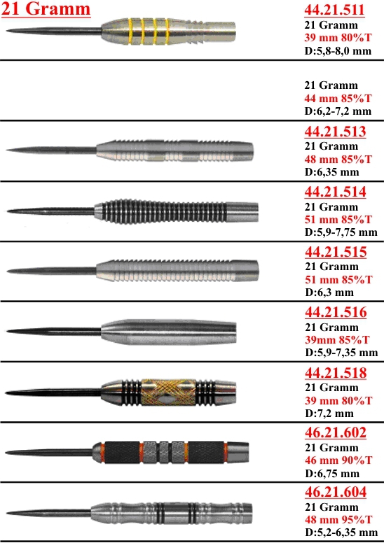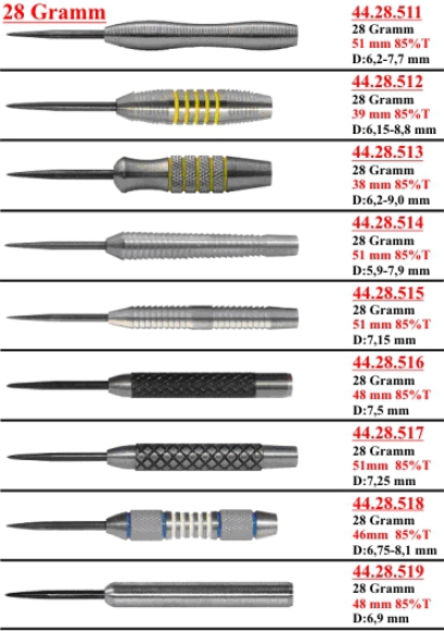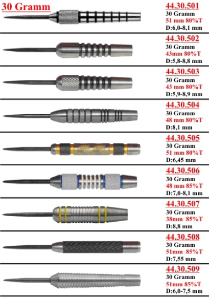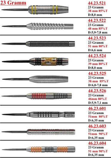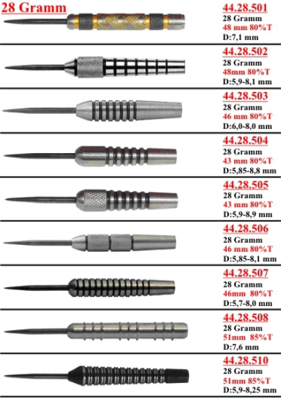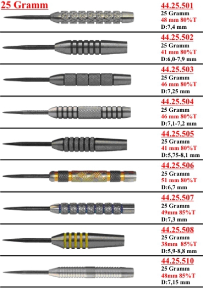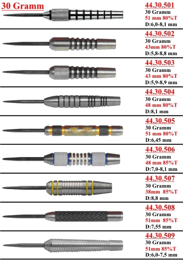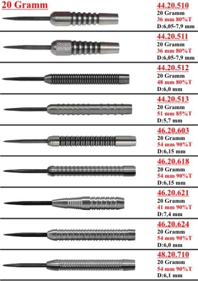 Hier jetzt eine riesige Auswahl an Steeldarts nach Gramm sortiert. 10 - 48 Gramm.